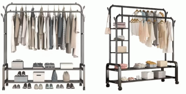 Τροχήλατη Μεταλλική Διπλή Κρεμάστρα & Διπλή Παπουτσοθήκη